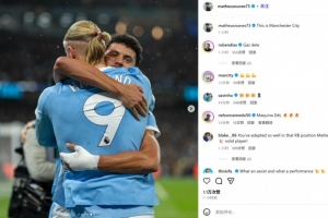 体育资讯11月10日讯 曼城在本轮英超焦点战主场3-0完胜利物浦,努内斯助攻哈兰德首开记录。