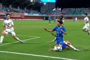 体育资讯11月10日讯 全运男足U20半决赛 广东U20vs上海U20。比赛第87分钟,黄铭放铲,钟文禁区倒地,广东队获得点球,张志雄主罚命中将比分改写为1-0。
