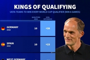 德转盘点欧洲世预赛全胜球队:德国、西班牙、英格兰、荷兰在列