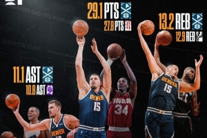 约基奇赛季得分>大梦生涯最高 篮板>邓肯最高 助攻>基德最高