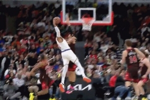 GIF-唐斯试图隔扣武切维奇失衡平拍在地,好在无碍
